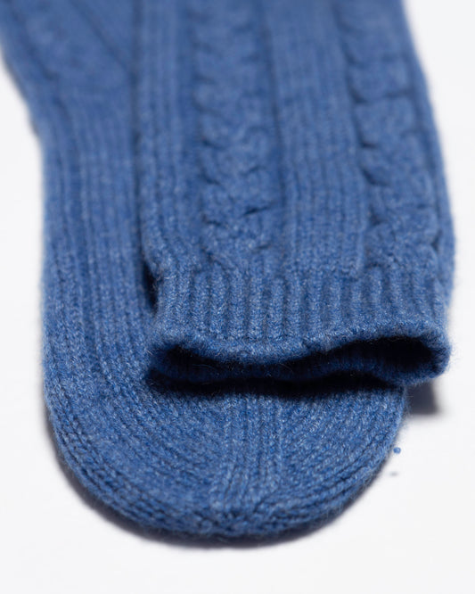 Cable Knit Cashmere Socks - Denim Blue