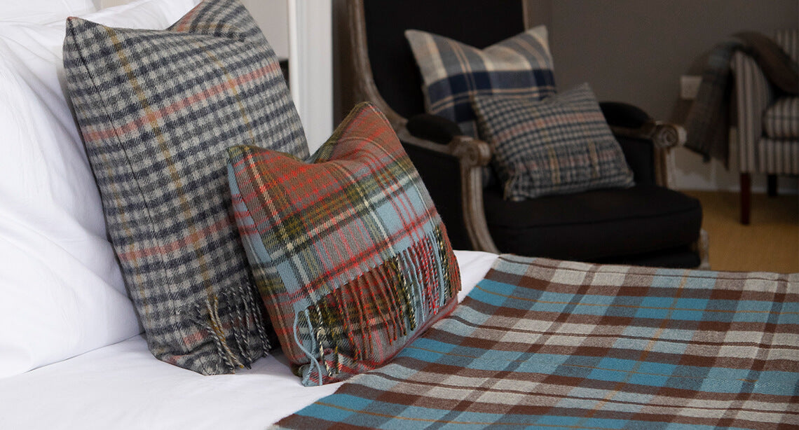 A curated collection of throws and cushions designed to bring natural texture and exceptional warmth to your living space. Each piece is crafted from the finest natural fibres, offering a touch of quiet Scottish luxury to create a sanctuary of comfort and style