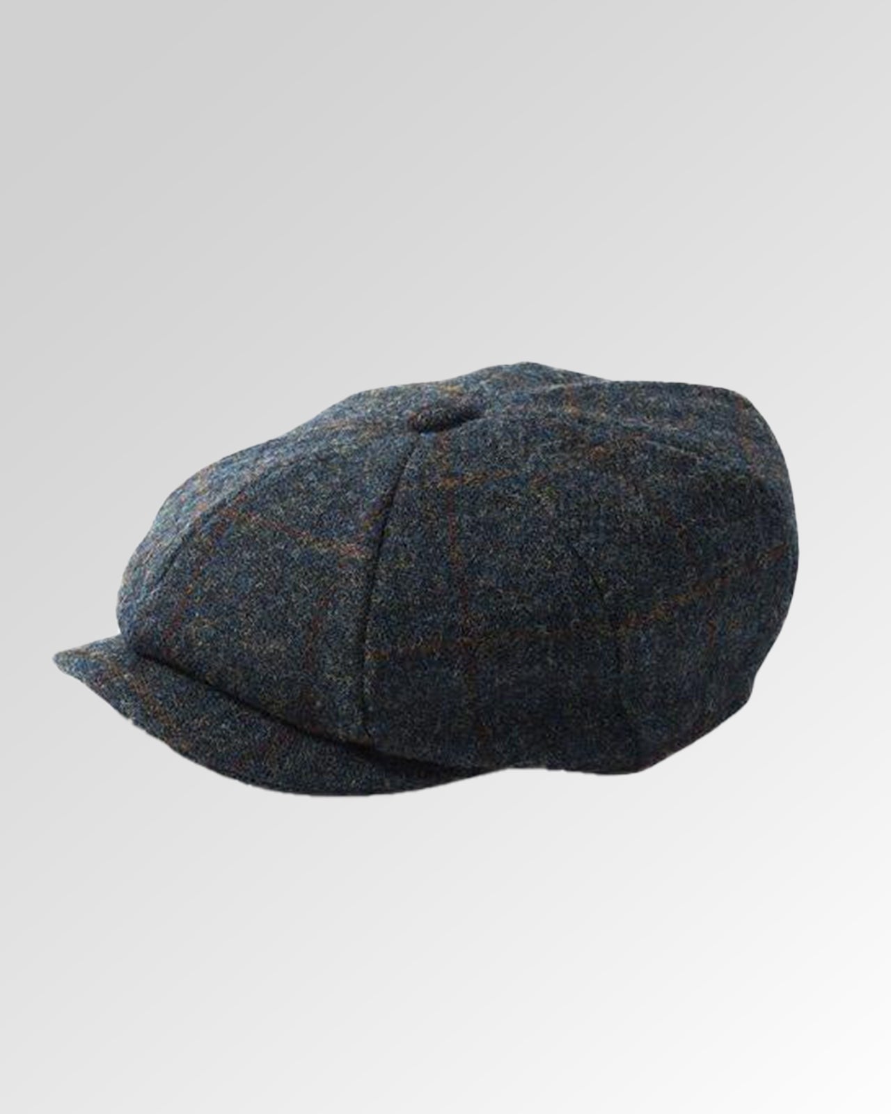 The traditional Carloway cap is a newsboy cap by Failsworth made with beautiful traditional Harris Tweed. Featuring a sewn-down brim and side pin with the Failsworth logo, the inside of the cap has a quilted lining and a grosgrain band for extra comfort.