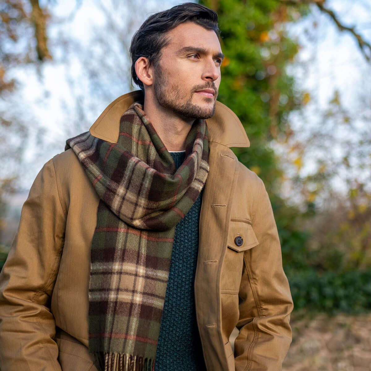 The Darwin is a generously oversized lambswool scarf available in a collection of classic and new tartans. The proportions of the scarf allow it to be fashionably styled for high impact and effect