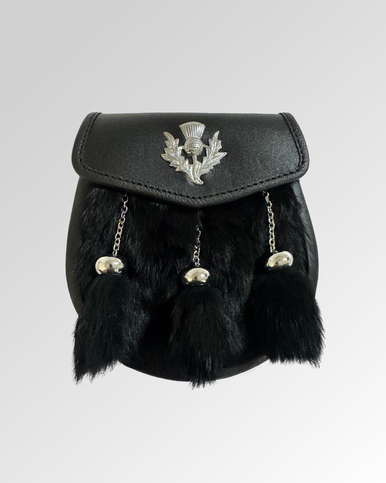 An ornately decorated pouch that hangs on the front of your kilt, kept in place by a belt or chain, a Sporran has the same function as pockets on a traditional pocketless kilt.